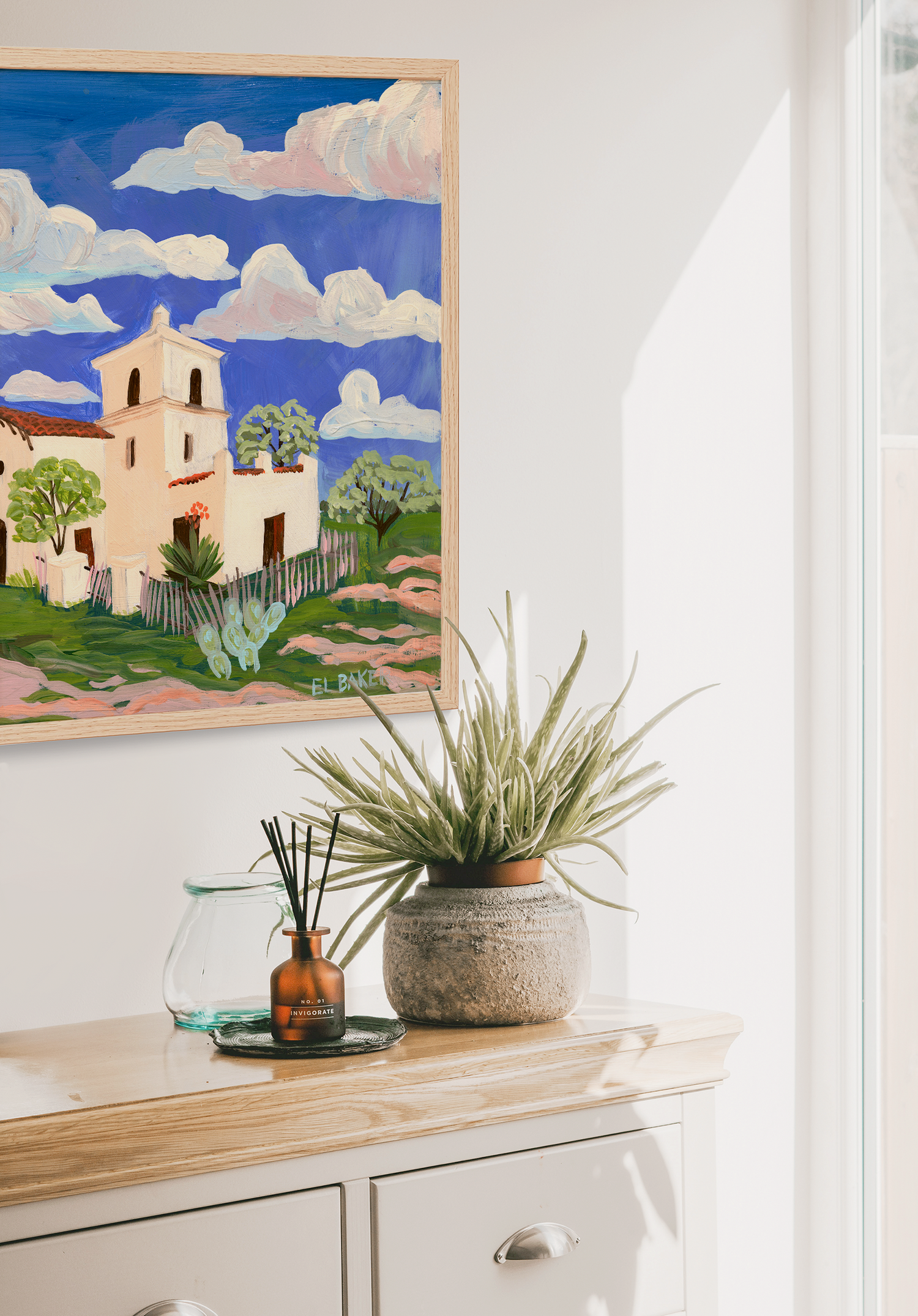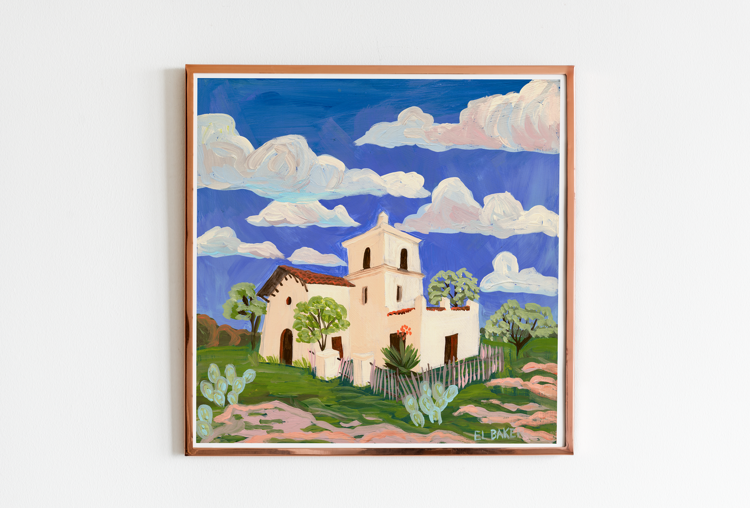 El Baker is an Austin-based artist who loves to experiment with materials and unexpected colors. She primarily creates mixed-media Texas landscapes, which are inspired by road trips across Texas. From the mountains of Big Bend National Park to the rolling landscapes of the hill country. Be sure to join her journey on Instagram, and visit her website to shop original paintings.