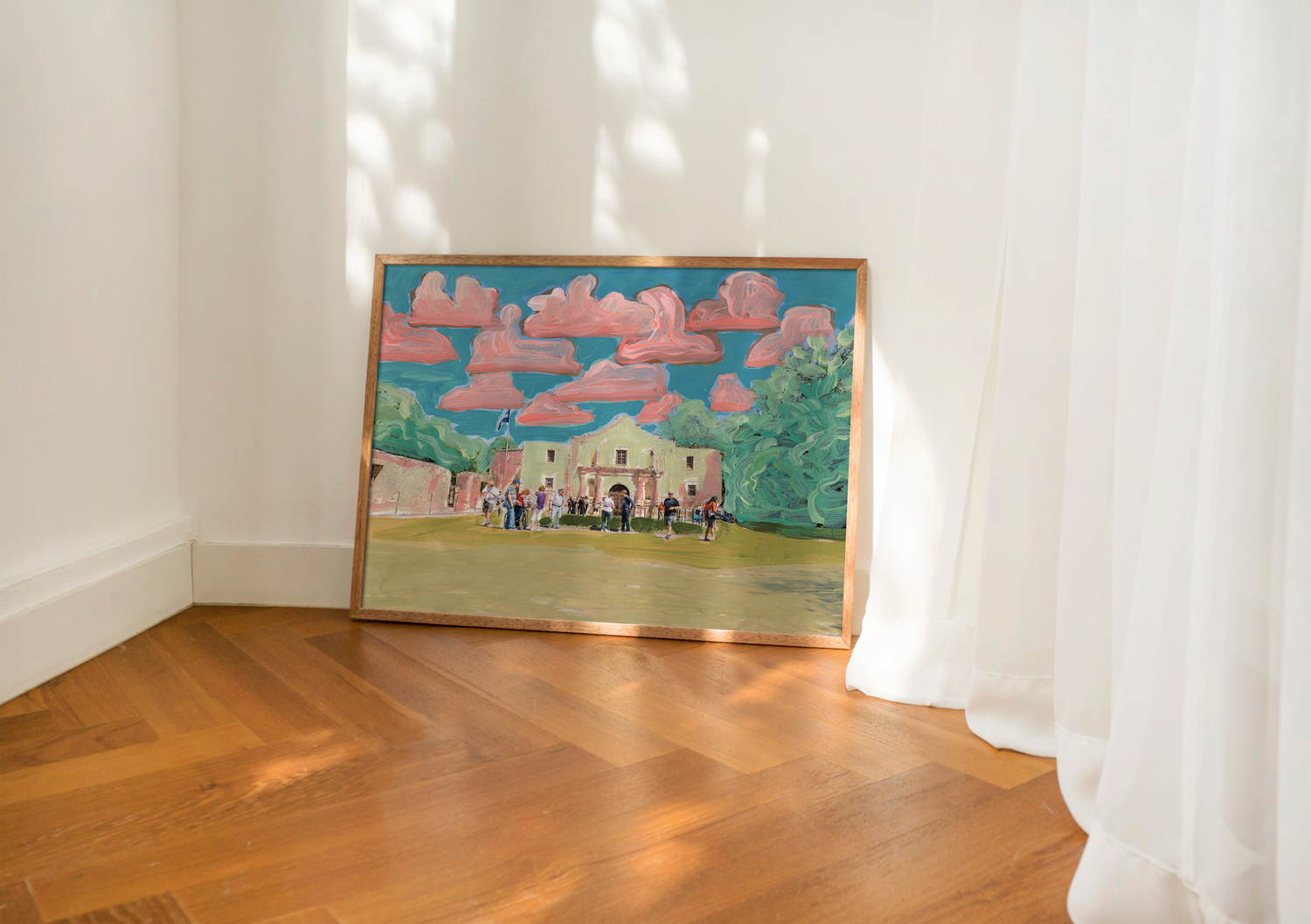 El Baker is an Austin-based artist who loves to experiment with materials and unexpected colors. She primarily creates mixed-media Texas landscapes, which are inspired by road trips across Texas. From the mountains of Big Bend National Park to the rolling landscapes of the hill country. Be sure to join her journey on Instagram, and visit her website to shop her original paintings.